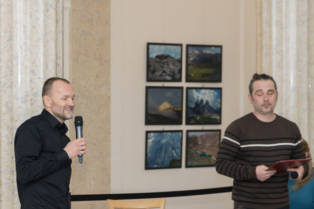 Ve čtvrtek 19.2.2026 jsme se byli podívat ve Slezském zemském muzeu v Opavě na vernisáž horolezce a fotografa, který byl jedním z členů, kteří založili Fotoklub Ostrava, Jiřího Kráčalíka. Pořádá zde retrospektivní výstavu fotografií převážně z hor „Dotknout se hory“. Vernisáž doprovázel bohatý program, během nějž vystoupili slavný mořeplavec Richard Konkolský, horolezec Marek Novotný, hudební duo Jana a Vladislav Burdovi a Azték Jean-Manuel Garcia, který předvedl aztécký tanec.
